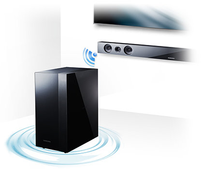 Moc niskich tonów Wzmocnij wrażenia dźwiękowe za sprawą bezprzewodowego, ultradźwiękowego głośnika niskotonowego w systemie Samsung Soundbar. Głośnik niskotonowy, bezproblemowy w obsłudze i konfiguracji, daje możliwość doświadczenia dynamicznych i nasyconych basów. Połączenie zalet listwy głośnikowej z jakością niskich tonów to gwarancja wyjątkowego doświadczenia dźwiękowego. Soundbar marki Samsung z bezprzewodowym głośnikiem niskotonowym – takiego zestawu nie znajdziesz nigdzie indziej. |