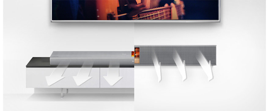 Samsung Soundbar wypełnia całe pomieszczenie ciepłymi i bogatymi brzmieniami. Lampa próżniowa eliminuje zbędny hałas, zapewniając doskonałą czystość dźwięku. Podczas oglądania ulubionych filmów i programów oraz słuchania muzyki ciepły, bogaty, intensywny dźwięk będzie rozchodzić się po całym pomieszczeniu. Głośnik Soundbar z lampą próżniową sprawi, że usłyszysz wszystko w doskonałej jakości.