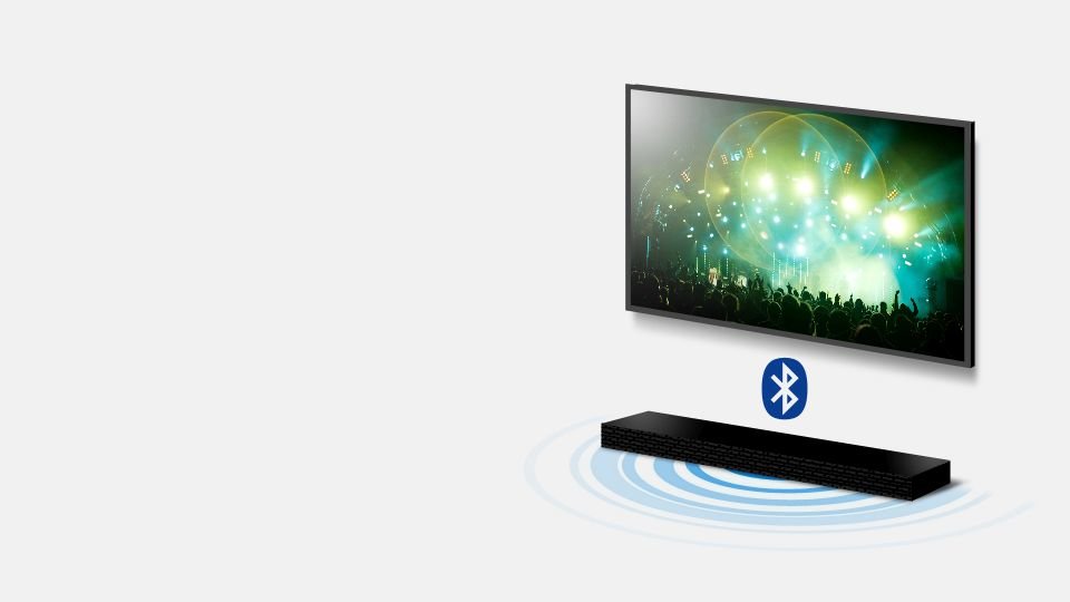 | Łączność bezprzewodowa Podłączenie soundbara do telewizora jest niezwykle proste – i bezprzewodowe. Soundbar odbiera sygnał z telewizora dzięki technologii TV SoundConnect* wykorzystującej Bluetooth. Pozbywając się dodatkowych kabli w pełni wyeksponujesz nieszablonową stylistykę głośnika. Co więcej, zarówno soundbar jak i telewizor możesz obsługiwać przy pomocy tylko jednego pilota. |