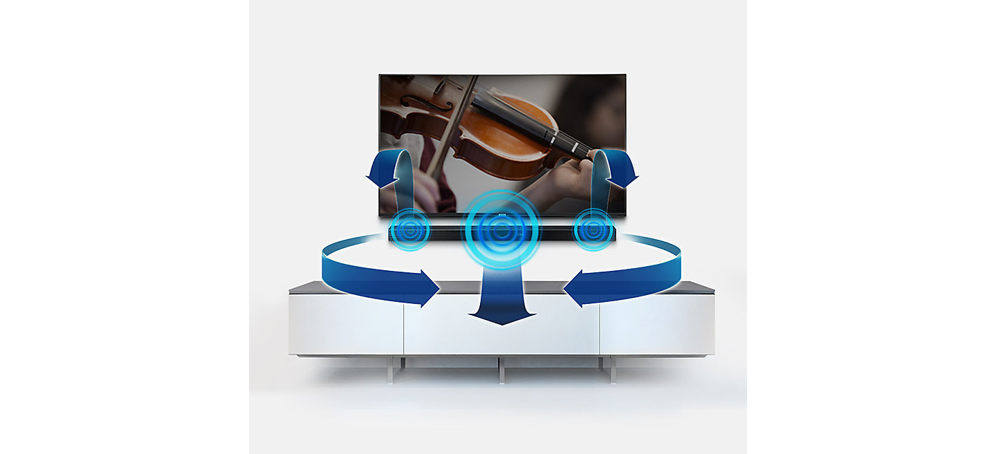 zakrzywiony design. Ten Soundbar to idealne uzupełnienie zakrzywionego