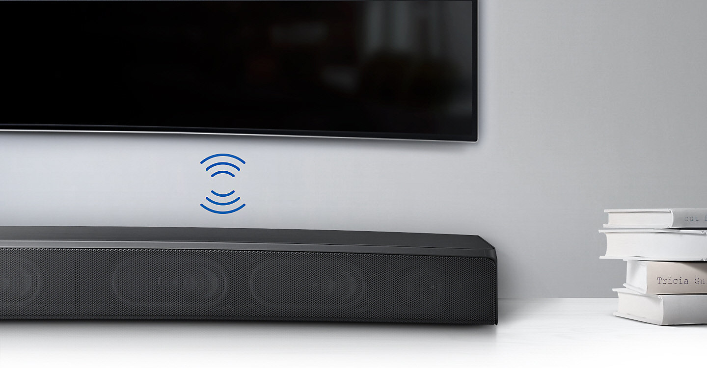 podłącz soundbar do telewizora Samsung przez Bluetooth lub Wi-Fi.