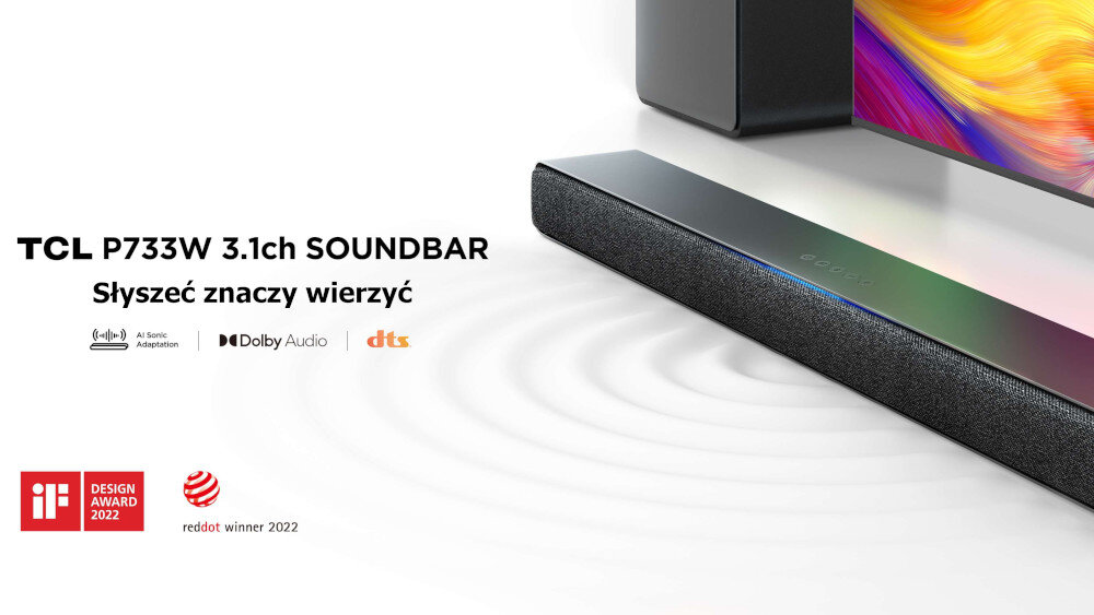 Soundbar TCL S55HE Czarny 2.1-kanałowy, Bezprzewodowy Subwoofer, Bluetooth, HDMI eARC, Dolby Atmos, DTS Virtual:X