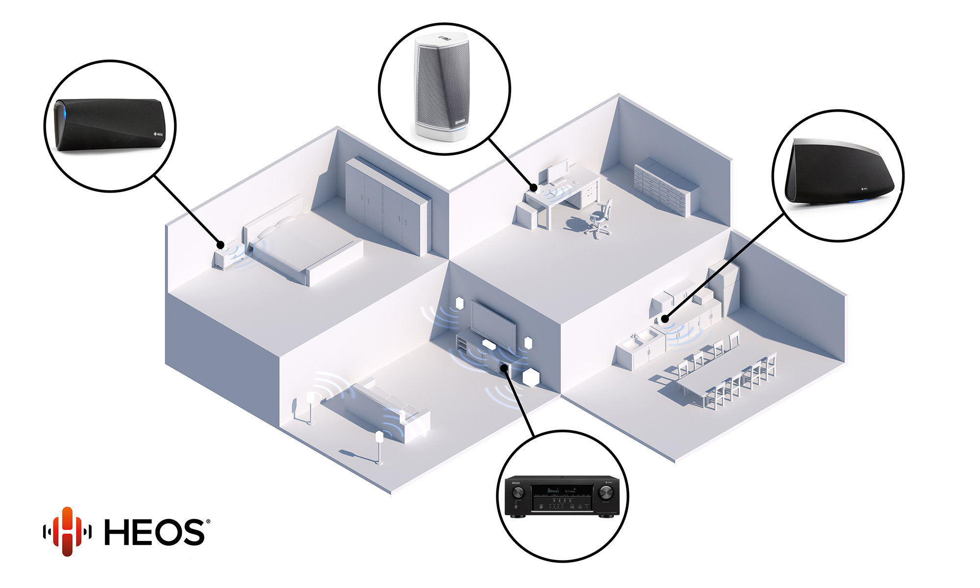 streaming muzyki multi-room HEOS, sterowany darmową aplikacją HEOS