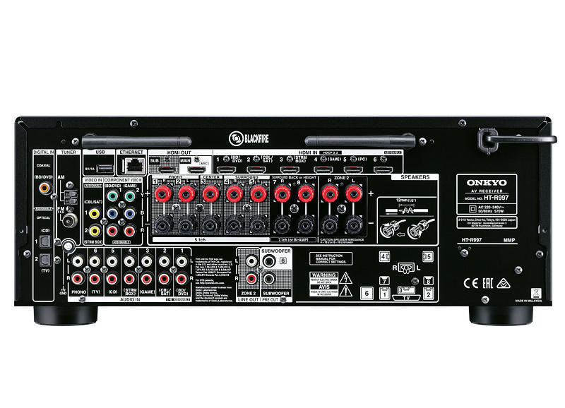 Wszystkie wzmacniacze audio wykorzystane w HT-R993 zbudowane są w technologii Dynamic Audio Amplification i wykorzystują wyłącznie tranzystory. W torze cyfrowym wykorzystano najwyższej klasy multikanałowy przetwornik C/A firmy Asahi Kasei model AK4458, pracujący z częstotliwości 384 kHz i długością słowa 32-bit. Dla miłośników dźwięku płynącego z płyt winylowych, dostępne jest wejście Phono z korektorem RIAA. |
