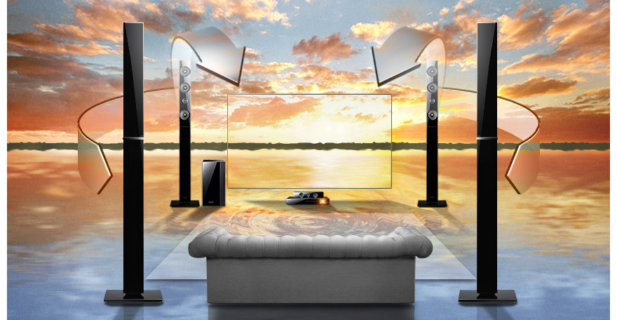 Zestaw kina domowego marki Samsung gwarantuje jeszcze głębsze niskie tony. Liczba watów nie zmieniła się, lecz dźwięk jest głębszy i bogatszy. Wibracje rozchodzą się promieniście z systemu głośników, tak aby każdy niski dźwięk został właściwie odtworzony. Mocny dźwięk sprawi, że odkryjesz nowy wymiar rozrywki i poczujesz się jak w prawdziwym kinie. Baw się dobrze z mocnym dźwiękiem zestawu kina domowego Samsung.