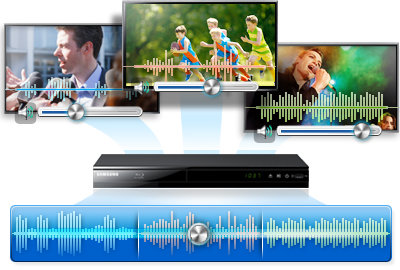 Niektóre kanały są głośniejsze niż inne. Na szczęście zestaw kina domowego Samsung potrafi wyrównywać poziom głośności. Funkcja inteligentnego zarządzania poziomem głośności umożliwia regulację i definiowanie ustawień, tak aby głośność była właściwie dobrana. Teraz możesz oglądać ulubione programy, filmy i transmisje sportowe bez ciągłego zmieniania ustawień za pomocą pilota.