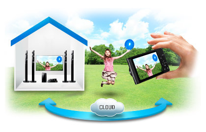 Bezprzewodowy dostęp i strumieniowe przesyłanie danych z dowolnego kompatybilnego urządzenia, np. komputera lub telefonu, do zestawu kina domowego Samsung jest możliwe za pomocą funkcji AllShare Play. To oznacza, że przy użyciu pojedynczego urządzenia możesz udostępniać filmy, zdjęcia i muzykę. Dzięki zaletom przechowywania danych w chmurze możesz mieć dostęp do swoich zasobów, a także udostępniać je nawet wtedy, gdy jesteś poza domem.