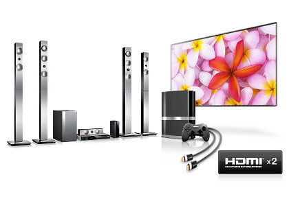 Aby podłączyć zestaw kina domowego do innych źródeł sygnału audio i wideo, wystarczy jeden kabel. Złącza HDMI w zestawie kina domowego Samsung umożliwiają importowanie wszystkich rodzajów danych bez kompresji, m.in. zdjęć i filmów wideo z kamery cyfrowej i komputera multimedialnego. Teraz oglądanie tego wszystkiego na panoramicznym ekranie HD będzie dziecinnie proste.