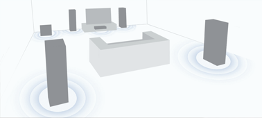5.1-kanałowy dźwięk przestrzenny i duża moc Połączenie 5 głośników z