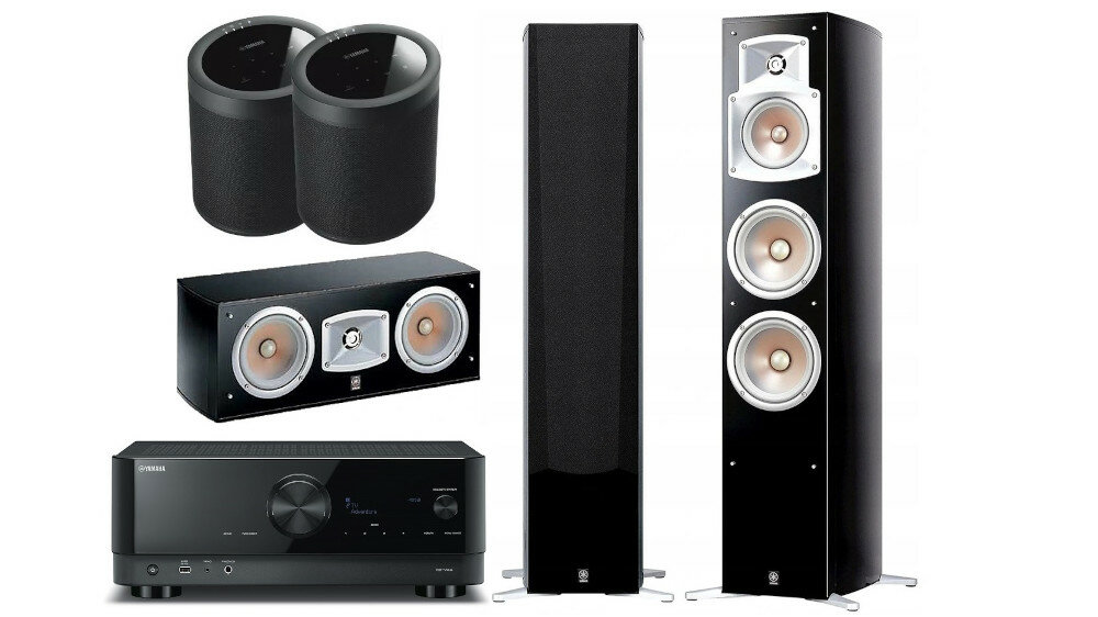 | Składniki kompletu: | 2 x głośniki bezprzewodowe Yamaha WX-021, Amplituner Yamaha RX-V4A, Kolumna centralna Yamaha NSC-444, Kolumny Yamaha NS-555 |