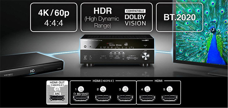 MusicCast RX-V683 obsługuje także HDR (High Dynamic Range) Video, w tym