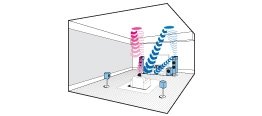 Dzięki DSP wirtualne głośniki przestrzeni dają dźwięki, jakie zwykle