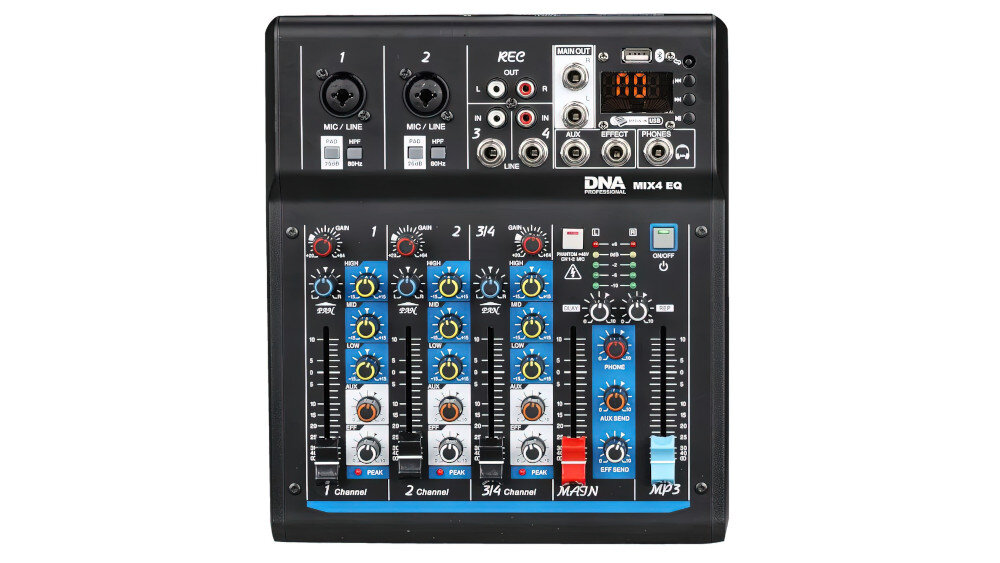 Użytkownik może łatwo kontrolować każdy z 4 kanałów przy pomocy suwakowych tłumików. Dodatkowo może korzystać z 3-pasmowego korektora tonów niskich, średnich i wysokich, a także podbijać sygnał i panoramować. Oprócz tego mikser wyposażono w efekt opóźnienia (delay) – poziom nałożenia na kanał i częstotliwość także można łatwo kontrolować.