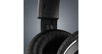 | Regulowane elementy nauszne i pałąk na głowę dopasowują się do kształtu każdej głowy Regulowane elementy nauszne zawsze dopasowują się do kształtu głowy, więc nawet nie zauważysz, że masz je na głowie. |