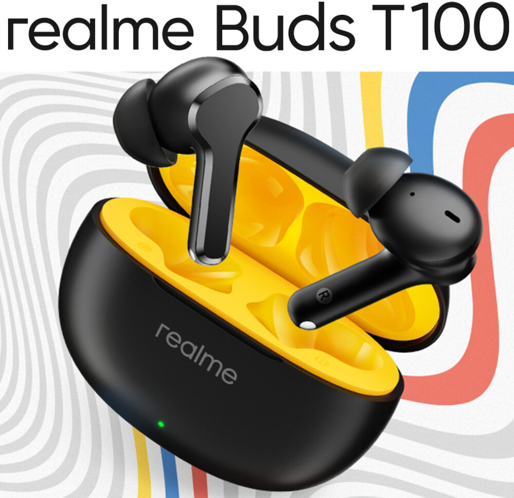Słuchawki dokanałowe REALME Buds T100, etui z funkcją ładowania (USB-C), kabel do ładowania (USC-C/USB-A), końcówki douszne x4 pary i dokumentacja.