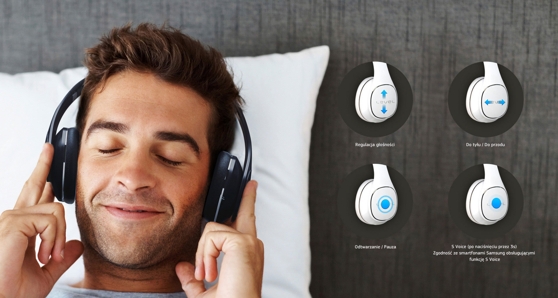 | Łatwe sterowanie Wykorzystaj w pełni swoje słuchawki przy pomocy dotykowego panelu sterowania, który daje Ci dostęp do takich funkcji, jak aktywacja S-Voice, kontrola głośności, sterowanie utworami - wszystko to bez sięgania po sparowane urządzenie. |