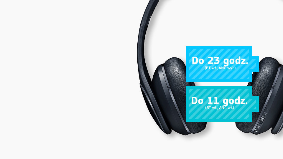 | Wytrzymalsza bateria Ciesz się dłużej muzyką, bez konieczności ładowania - gdy słuchawki są połączone przez Bluetooth, mogą grać przez od 11 (z włączonym ANC) do nawet 23 godzin (z wyłączonym ANC). W przypadku połączenia przewodowego, możesz słuchać muzyki do 20 godzin, z włączonym trybem ANC. |