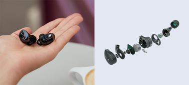 Mały przetwornik akustyczny 6 mm znajdujący się we wnętrzu słuchawek zapewnia czysty dźwięk.  |