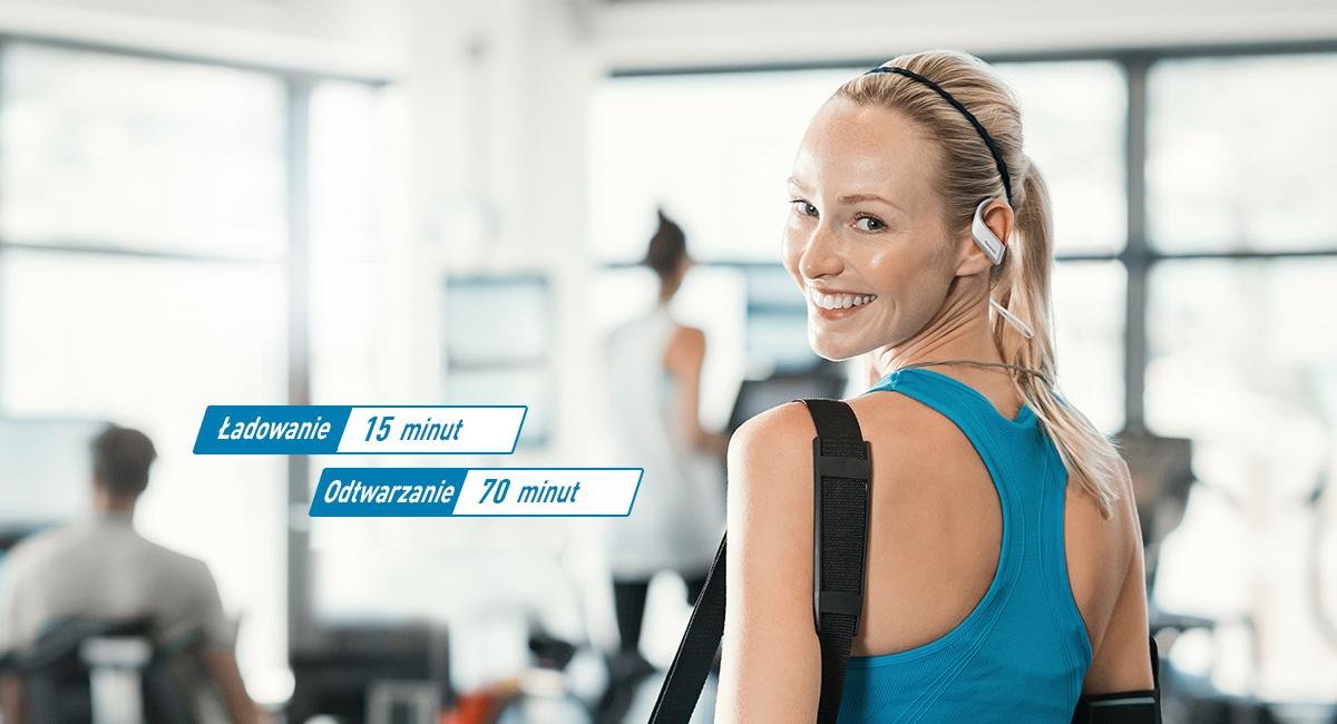 Słuchawek BTS55 można używać nawet przez 70 minut po ładowaniu trwającym zaledwie 15 minut. Nawet jeśli zapomnisz je naładować, po krótkiej chwili będą znów gotowe do działania przez dłuższy czas. Pełne naładowanie umożliwia słuchanie muzyki przez 6 godzin. |