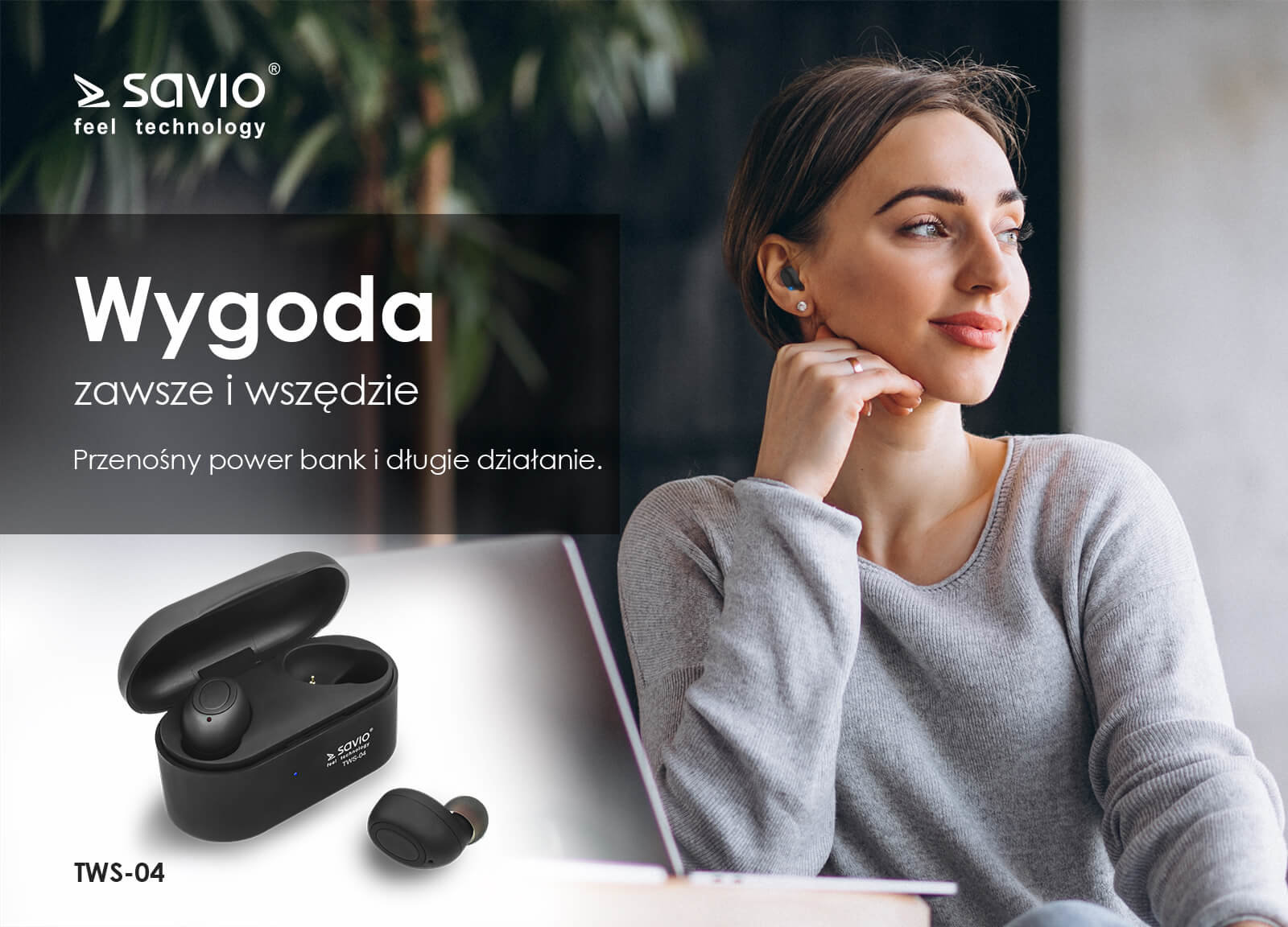 - Słuchawki dokanałowe SAVIO TWS-04 Czarny
