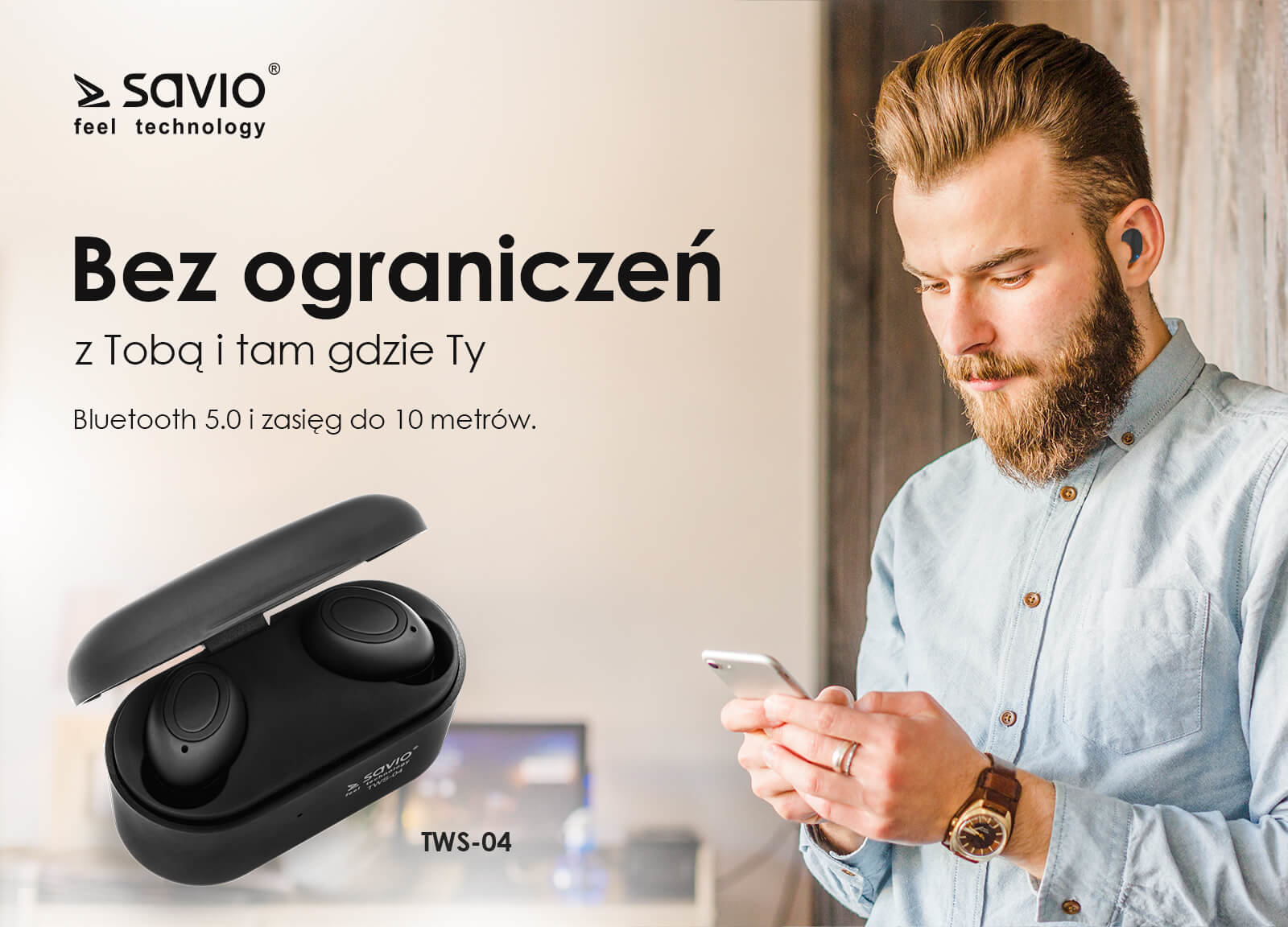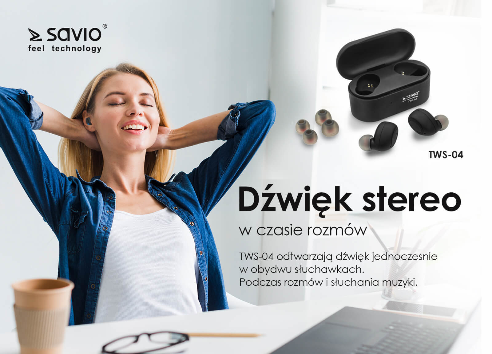 Bezprzewodowe słuchawki Bluetooth SAVIO TWS-04