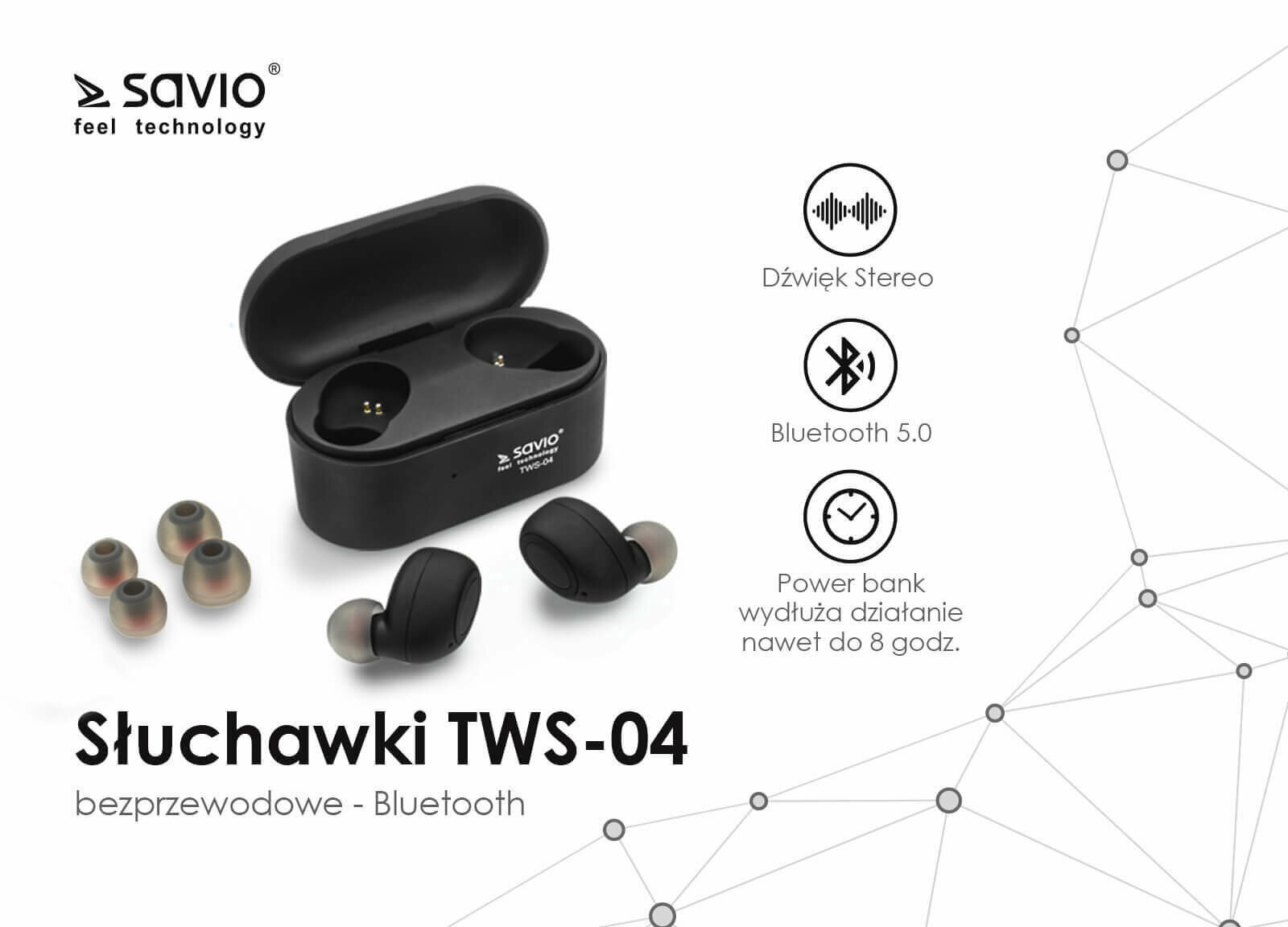 Instrukcja obsługi Słuchawki dokanałowe SAVIO TWS-04 Czarny