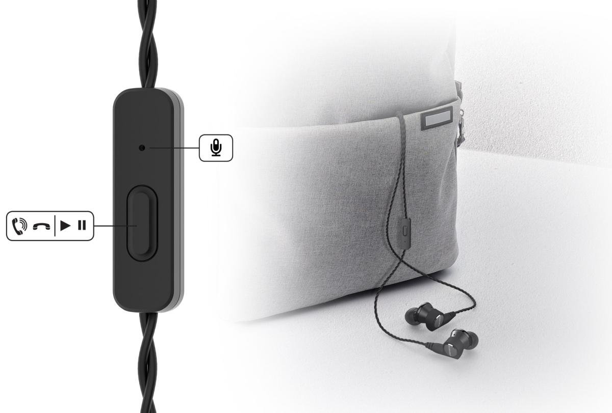 Słuchawki dokanałowe Aurvana Trio posiadają mikrofon, który zapewnia wyjątkowy dobry odbiór głosu podczas rozmów telefonicznych. Moduł z mikrofonem posiada również łatwo dostępny przycisk do sterowania odtwarzaniem muzyki. |