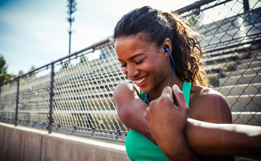 Jako najlżejsze sportowe słuchawki douszne JBL Mini zapewniają długotrwały komfort w czasie różnorodnych zajęć sportowych. |