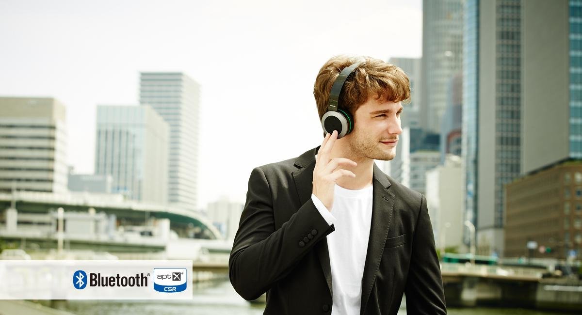 Dzięki bezprzewodowej technologii Bluetooth® słuchawki BTD10 niewygodne i poplątane kable odchodzą do lamusa. Funkcja NFC umożliwia połączenie ze smartfonem jednym dotknięciem, zaś zgodność ze standardem aptX® oznacza, że na jednym ładowaniu można odsłuchać do 30 godzin muzyki w wysokiej jakości. Jeśli jednak uda Ci się wyczerpać baterie, wystarczy wyjąć dołączony przewód z torby czy kieszeni i podłączyć słuchawki. To początek muzyki nowej generacji.