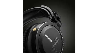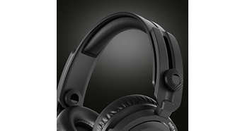 | Dwustronne obrotowe ramiona umożliwiają odsłuch na jednym uchu Słuchawki stworzono z myślą o profesjonalnych DJ-ach, dlatego elementy nauszne obracają się dookoła, aby można było usłyszeć, co dzieje się w pobliżu, np. podczas słuchania muzyki w ruchu lub gdy chcesz posłuchać okrzyków słuchaczy. |