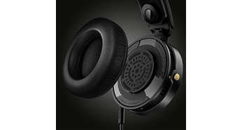 Wygodne, odłączane i wymienne poduszki Materiały użyte w słuchawkach zostały starannie dobrane, aby zapewnić długotrwały komfort i wysoką jakość dźwięku. Luksusowe wentylowane elementy nauszne zapewniają optymalne, ergonomiczne dopasowanie, ochronę przed utratą tonów niskich oraz tłumienie hałasów otoczenia. |