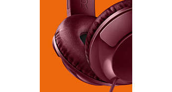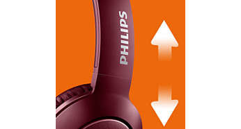 | Opracowane z myślą o optymalnym dopasowaniu Zaprojektowane z myślą o optymalnym dopasowaniu słuchawki BASS+ są wyposażone w obrotowe elementy nauszne i regulowany pałąk na głowę, co pozwala użytkownikowi dokładnie je dopasować. |