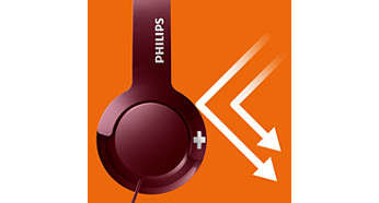 Doskonała izolacja dźwięku zapewnia lepsze wrażenia odsłuchowe Dzięki zamkniętej konstrukcji akustycznej słuchawki BASS+ blokują dźwięki z otoczenia, co pozwala uzyskać ulepszoną izolację dźwięku zapewniającą lepsze wrażenia odsłuchowe. |