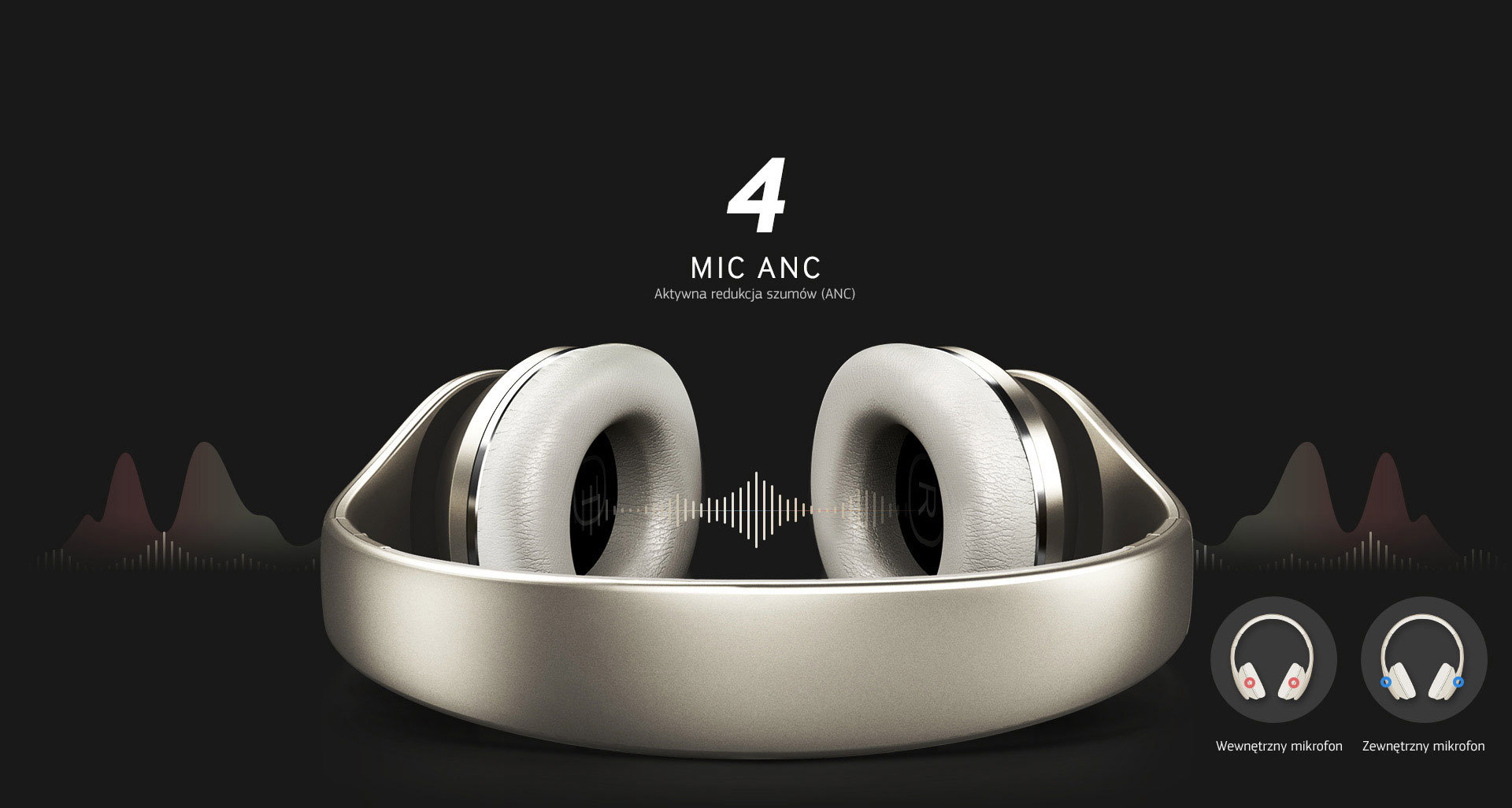 Studio Sound Bezprzewodowe słuchawki Level On Pro nie tylko zapewniają dźwięk w jakości studia nagraniowego — mają też funkcję aktywnej redukcji szumów (ANC). Cztery wbudowane mikrofony, po dwa w każdym nauszniku, umożliwiają dokładne monitorowanie dźwięków wokół Ciebie.