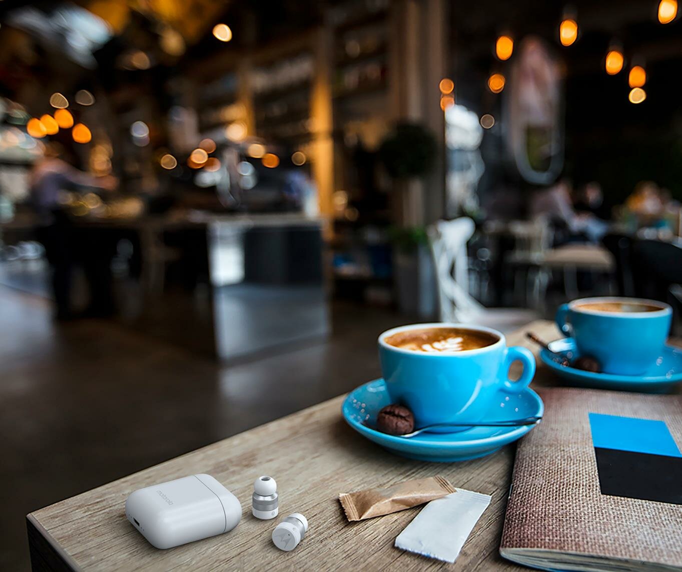 Obie słuchawki mają wbudowany chip Bluetooth 5.0 oraz mikrofon, dzięki czemu możesz używać ich zarówno w parze jak i pojedynczo. Nowa technologia łączenia pozwala na szybkie parowanie oraz błyskawiczne przesyłanie sygnału. Dla Twojej wygody słuchawki po pierwszym sparowaniu z danym sprzętem łączą się z nim następnym razem automatycznie.