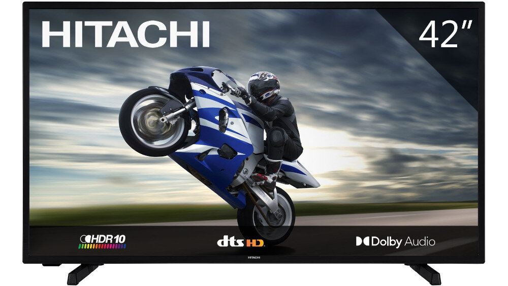 Zakupując telewizor HITACHI HE4300, otrzymujesz urządzenie podstawowe, podstawę, pilota oraz dokumentację.