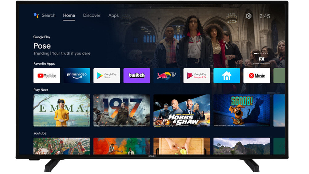 HITACHI Android TV umożliwia dostęp do ogromnych zasobów treści online za pomocą jednego kliknięcia na pilocie. Możliwe jest przesyłanie filmów, treści wideo i muzyki w czasie rzeczywistym z wielu stron internetowych. Można wypożyczyć najnowszy hit kinowy, oglądać popularne wideo lub ulubione programy telewizyjne. HITACHI Android TV zapewnia dostęp do szerokiej gamy aplikacji internetowych, m.in. wiadomości, sportu, gier, pogody, rozrywki i sieci społecznościowych.