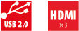 | Złącza: | HDMI x3, USB x2 |