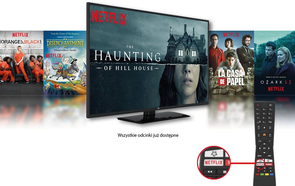 Już z poziomu pilota możesz dostać się do bogatego zbioru filmów, seriali i programów rozrywkowych dostępnych na platformie wideo na życzenie Netflix. Wiele godzin rozrywki czeka na Ciebie.