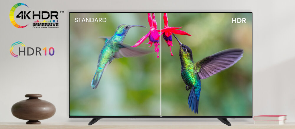 Wysoka rozdzielczość Ultra HD zapewnia niezwykle szczegółowy obraz, niezależnie od rodzaju oglądanych multimediów. Będziesz zachwycony seansami filmowymi, grą na konsoli lub kibicowaniem ulubionej drużynie. Wyświetlane kolory są bardzo żywe i realistyczne dzięki obecności technologii HDR10. Obraz wygląda tak dobrze między innymi dlatego, że standard ten korzysta z metadanych, w których zapisane są informacje na temat barw, kontrastów i poziomu jasności obrazu.