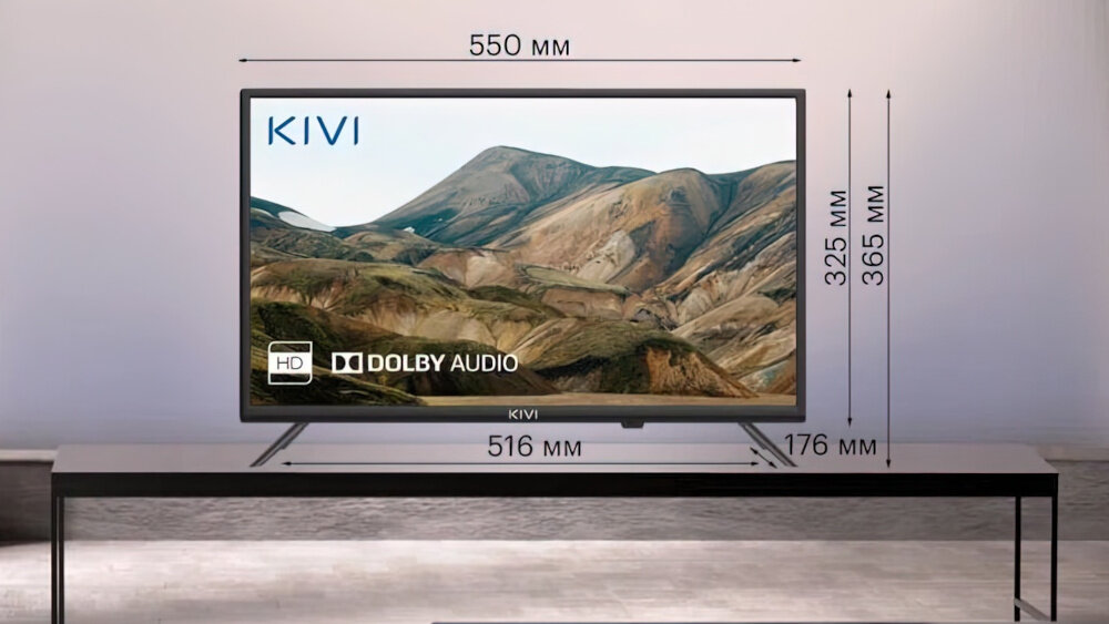 Zakupując telewizor KIVI H500LB, otrzymujesz urządzenie podstawowe, podstawę stołową, pilota, kabel zasilający oraz baterie.