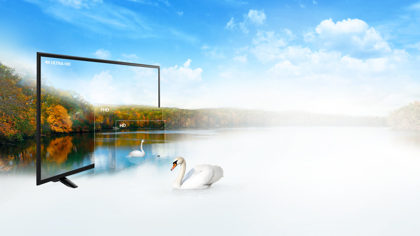 Telewizor 4K ULTRA HD pozwala cieszyć się wysoką jakością obrazu z każdego źródła. Jest wyposażony w funkcję skalowania obrazu 4K Upscaler, dzięki której audycje telewizyjne, filmy i transmisje sportowe o standardowej rozdzielczości mogą być wyświetlane z jakością zbliżoną do 4K. Tym samym, nawet w przypadku treści o standardowej rozdzielczości można podziwiać najdelikatniejsze szczegóły obrazu.