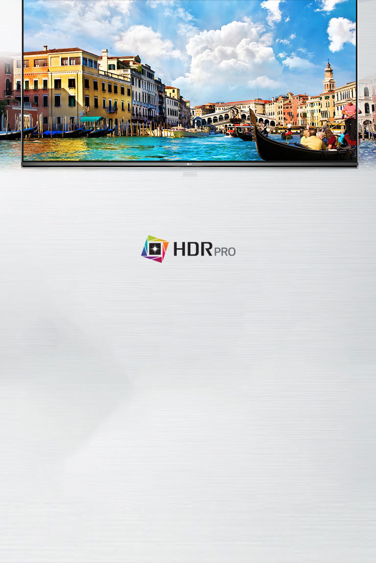 Funkcja HDR Pro dostosowuje jasność ekranu, tak aby zapewnić realistyczny, wyraźny obraz. Dzięki regulacji jasności telewizor LG UHD wyświetla obraz o bogatszych kolorach oraz precyzyjnie odwzorowanych szczegółach. Dzięki funkcji HDR Pro można cieszyć się żywymi kolorami oraz bogactwem detali.