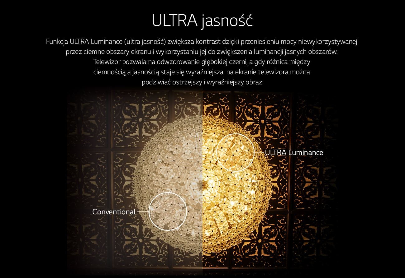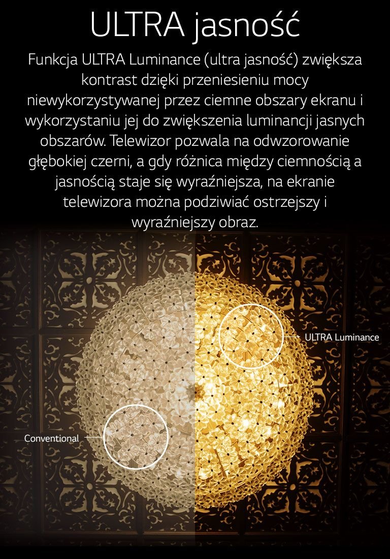 Dzięki funkcji ULTRA Surround konwencjonalny dwukanałowy system głośników może odtwarzać wirtualny, siedmiokanałowy dźwięk przestrzenny. Realistyczne efekty dźwięku przestrzennego, zapewniane przez funkcję ULTRA Surround, sprawiają, że obraz 4K dostarcza jeszcze silniejszych wrażeń.