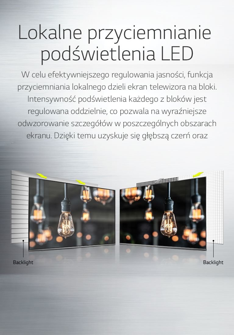 Telewizor jest wyposażony w funkcje sterowania podświetleniem ekranu, która umożliwia dostosowywanie jasności w celu oszczędzania energii.