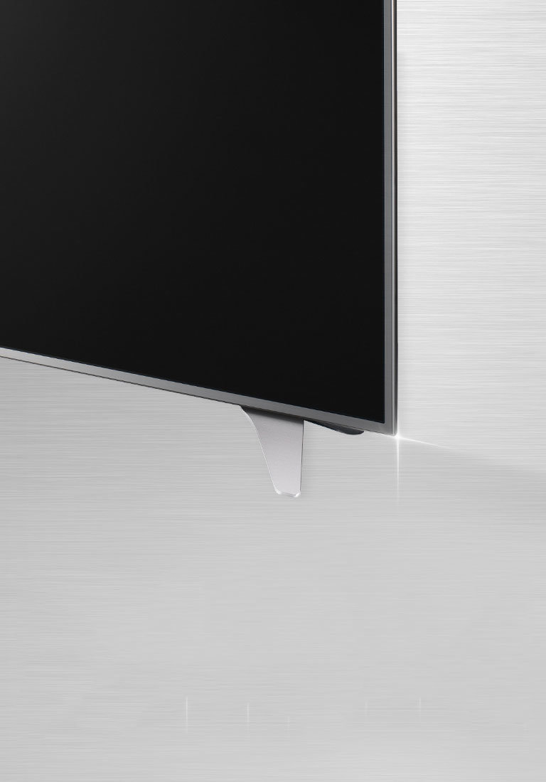 Elegancka, futurystyczna konstrukcja z metalowymi elementami sprawia, że telewizor staje się ozdobą wnętrza.