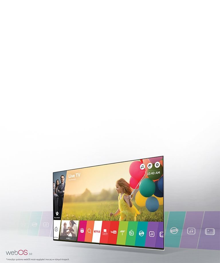 System webOS 3.0 zaprojektowano tak, aby umożliwić łatwe i atrakcyjne korzystanie z funkcji dostępnych w telewizorach LG Smart TV. Teraz naprawdę można odprężyć się, ponieważ dzięki systemowi webOS 3.0 obsługiwanie telewizora stało się łatwiejsze i wygodniejsze niż kiedykolwiek wcześniej.