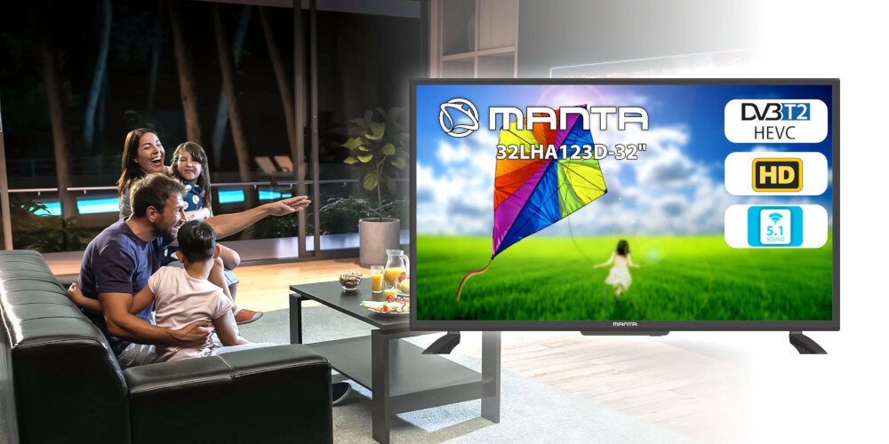 Telewizor MANTA 32LHA123D oferuje prosty, a jednocześnie elegancki wygląd. Uniwersalna, czarna kolorystyka tego modelu sprawia, że z łatwością można wkomponować go w wystrój większości wnętrz. To sprawia, że telewizor możemy umieścić w salonie, a także sypialni czy dziecięcym pokoju. Jego rozmiar jest wystarczający, by zapewnić komfort podczas oglądania ulubionych filmów czy seriali, a jednocześnie - by nie zająć całej dostępnej przestrzeni.