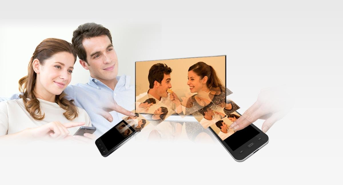 Nawiązując połączenie między smartfonem lub tabletem a telewizorem, można swobodnie udostępniać treści i zwiększyć komfort obsługi.