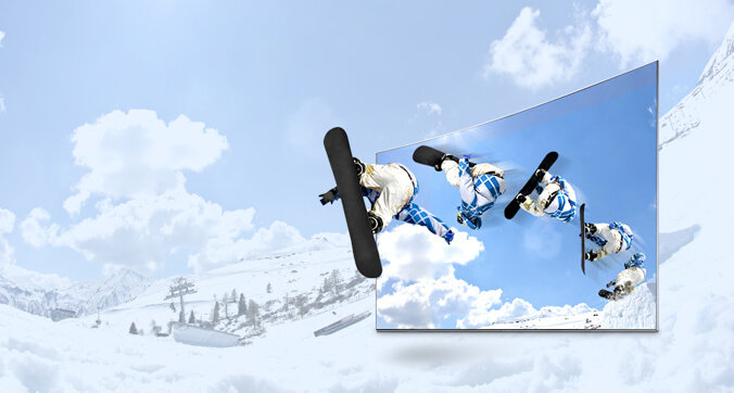 Oglądając film na zakrzywionym ekranie, masz wrażenie, że obraz Cię otacza, a Ty znajdujesz się w samym centrum akcji. Zakrzywiony ekran swoim kształtem nawiązuje do budowy oka, co sprawia, że obraz jest wolny od zniekształceń, ponieważ każdy punkt na ekranie znajduje się w takiej samej odległości od oczu.